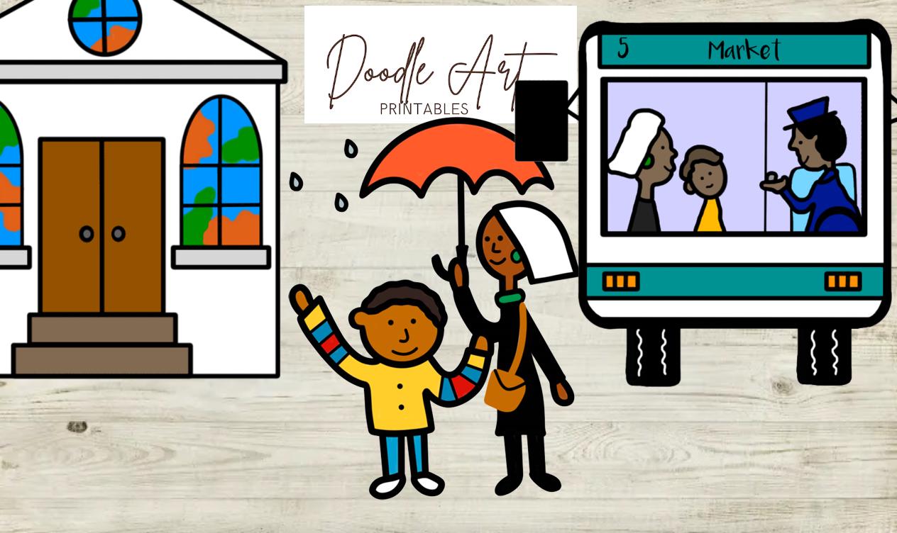 * Grandma * Kid * Bus * Bus Stop * Buildings * Church * Friends * Etc.