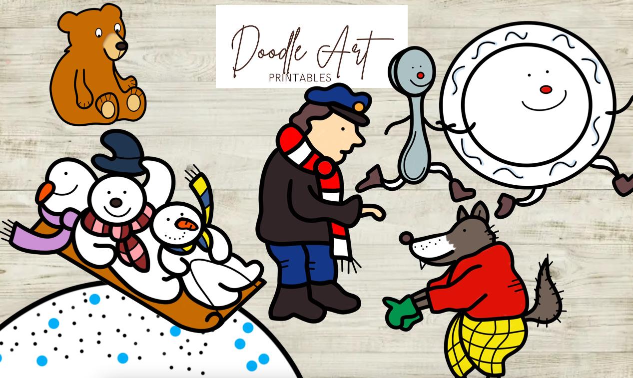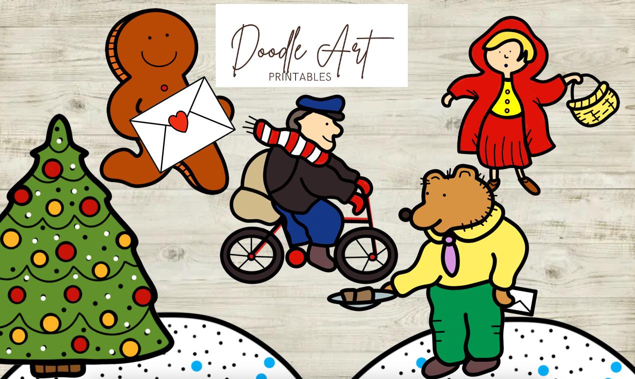 * Postman * 3 Bears * Humpty Dumpty * Little Red * Snowmen * Wolf * Tree(s) * Envelope * Etc.