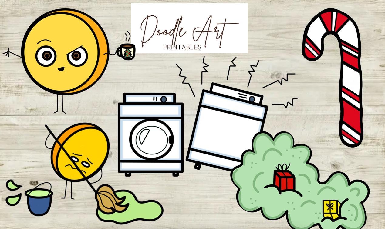* Big Cheese * Cheese * Christmas Tree * Presents * Ornaments * Puppy * House * Snow * Washer and Dryer * Flood * Cleaning * Party * Friends * ETC.